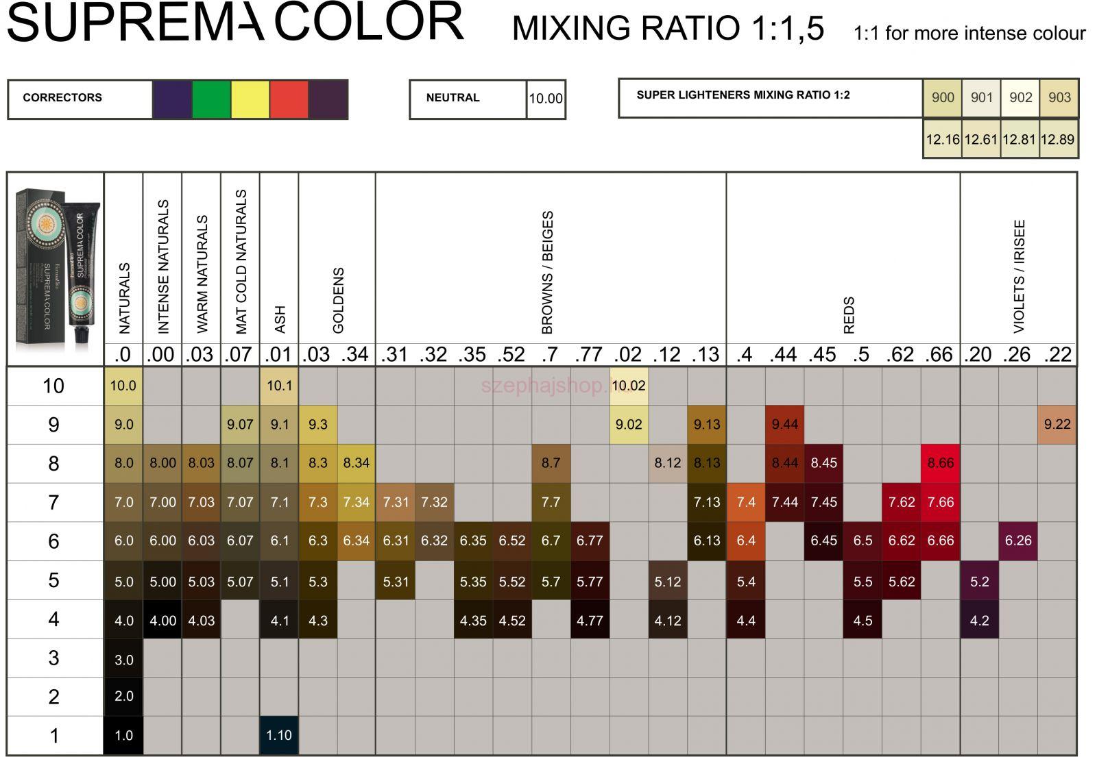 Professzionális Suprema color - professzionális oxidációs tartós krémhajfesték SZÍNSKÁLA