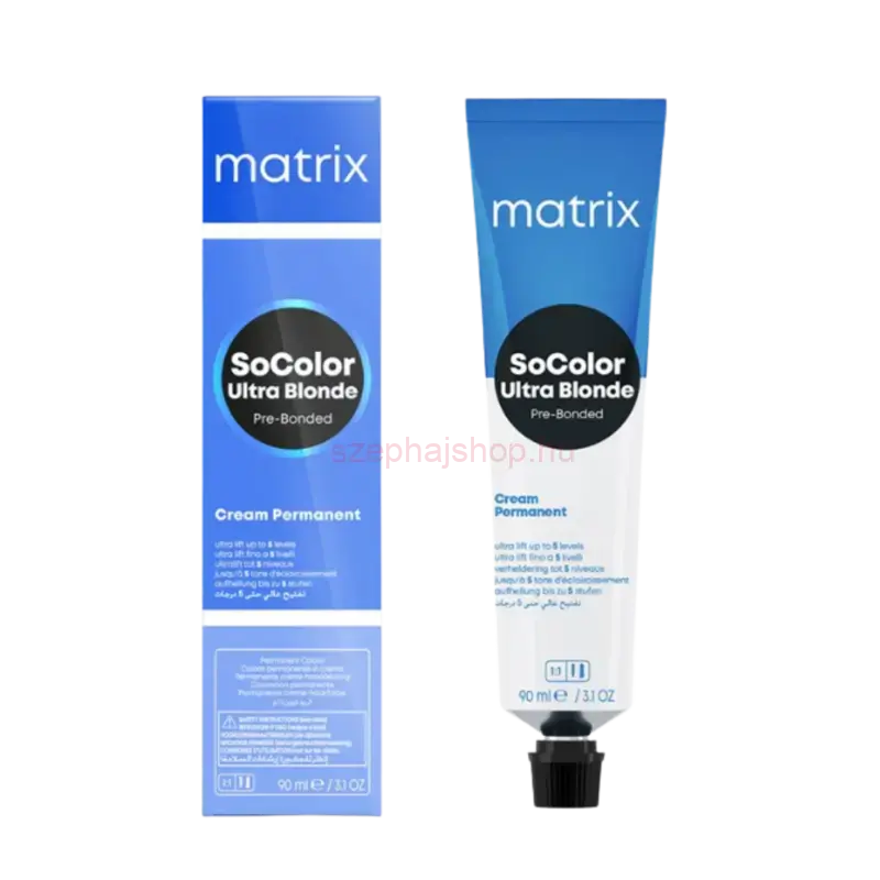 A Matrix SoColor Pre-Bonded Ultra Blonde professzionális permanens hajfesték az egyik legfejlettebb világosító és ultraszőke színkollekció, amely akár 4–5 szint világosítást biztosít világos barna vagy sötétebb szőke alapszínből, miközben védi a haj belső kötéseit és szerkezetét a festési folyamat során.