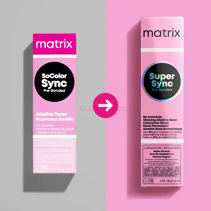 A Matrix SoColor Sync Pre‑Bonded Alkaline Hair Color egy professzionális demi‑permanens, lúgos bázisú hajszínező, amely intenzív tónus‑korrekcióra, árnyalat semlegesítésre, színfrissítésre és fényes, egyenletes színeredmény biztosítására szolgál szalonhajszínezés során.