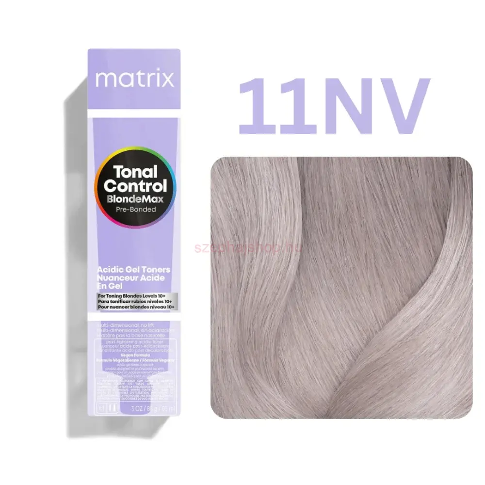 A MATRIX Tonal Control BlondeMax Pre-Bonded Gel Toner 11NV egy savas pH-értékű, professzionális gél toner, amelyet 11-es szintű, extra világos szőkített alapok kifinomult, hűvös tónusának kialakítására fejlesztettek.