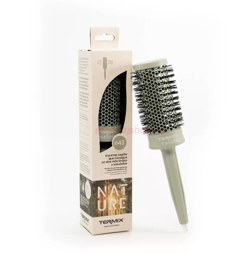 Az első hajkefe amely tisztább, egészségesebb levegőt biztosít. A Termix Professional új Nature hajkefecsaládja természetes anyagtechnológiájának köszönhetően képes a klímaváltozás elleni küzdelemre. Ez az újdonság szürke, zöldes, friss és pihentető tónusban érkezik.