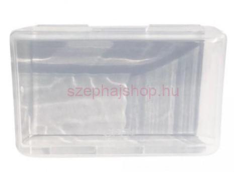 Különböző méretű szilikonpárnák tárolására alkalmas üres, műanyag tok.