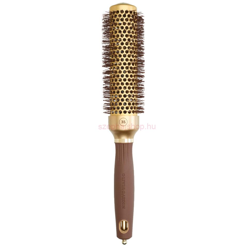 Olivia Garden Expert Blowout Speed Wavy Bristles Brush Gold and Brown 35 mm – Professzionális körkefe félhosszú hajhoz
