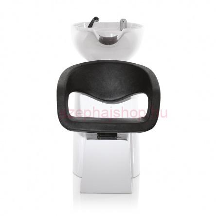 Wave fehér fejmosó, fekete műbőr kárpitozású ülőrésszel. A fejmosó rész állítható. Zuhanyszettel és csapteleppel szállítjuk. A Wave fodrász bútor család tagja, amelyek kombinálása esetén, egységes egyedi stílust varázsolhatunk a fodrász szalonunkba, amellyel biztosan ki fogsz tűnni a fodrász szalonok sokaságából.
