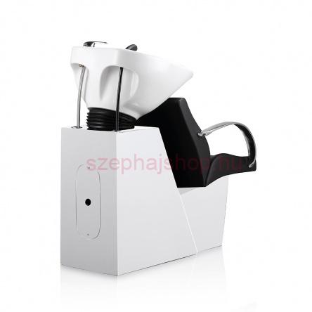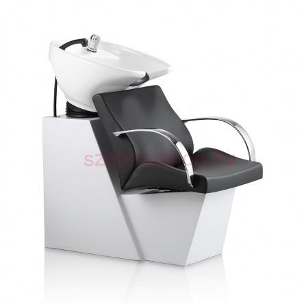 Moon fehér fejmosó, fekete műbőr kárpitozású ülőrésszel. A fejmosó rész állítható. Zuhanyszettel és csapteleppel szállítjuk. Az Moon fodrász bútor család tagja, amelyek kombinálása esetén, egységes egyedi stílust varázsolhatunk a fodrász szalonunkba, amellyel biztosan ki fogsz tűnni a fodrász szalonok sokaságából.