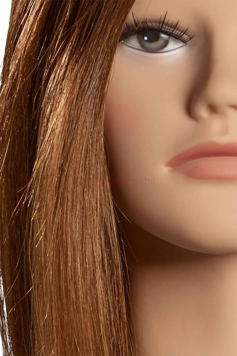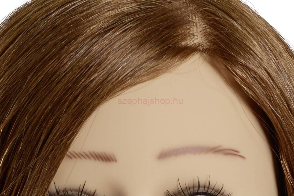 A Julia szemléltető babafej középszőke hajú, 7-es színmélységű, és a koronától varrott. A L'IMAGE fej 40 cm hosszú, 107g, Indiai emberi hajával minden hajviselethez tökéletes hosszúságú.