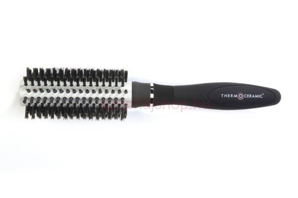 Termo kerámia szőr kör hajkefe. 100% Vaddisznószőr sörterésszel, ami simábbá és fényesebbé tezsi a hajat. A kerámia bevonat miatt jobb a hőleadás, ezáltal intenzívebb lehet a hajszárítás. Gumi nyél bevonat, ezáltal nem csúszik a kézben. 25mm- es átmérő.